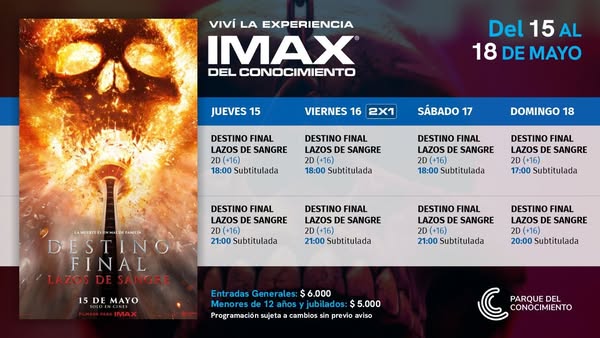 En el Imax del Conocimiento. Ver horarios en cartelera. Compra de tickets anticipados en https://imaxdelconocimiento.com/