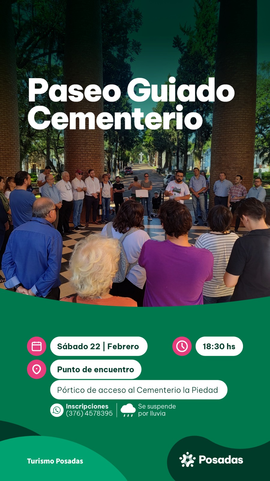 Punto de Encuentro: Cementerio La Piedad. A las 18:30 horas. Inscripción previa al 3764 578395.