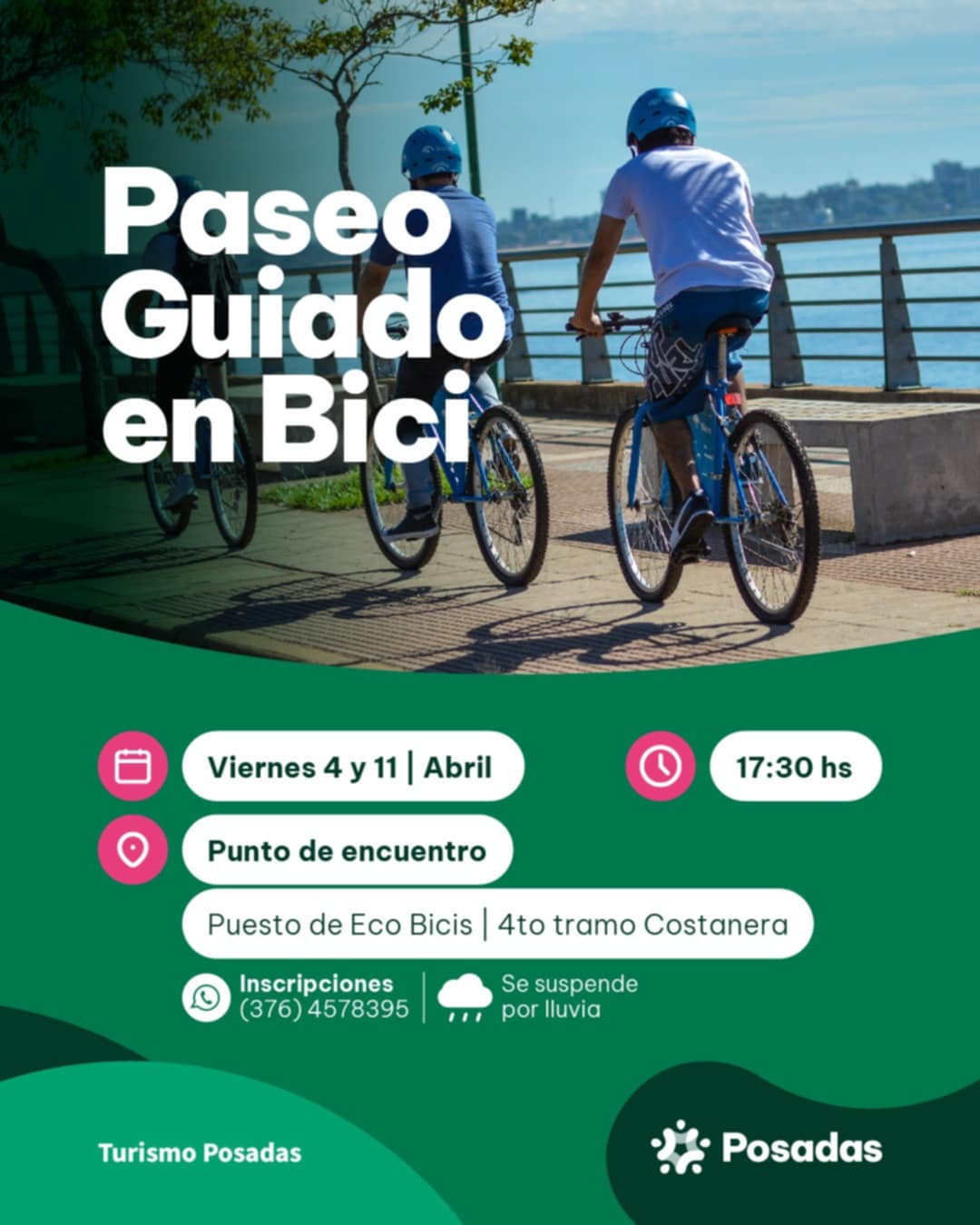 Punto de encuentro: Puesto Ecobici, 4to tramo de la Costanera. A las 17:30 horas. Inscripción previa.