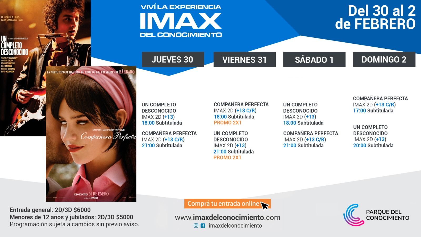 En el Imax del Conocimiento. Ver horarios en cartelera. Compra de tickets anticipados en https://imaxdelconocimiento.com/ o en boletería.