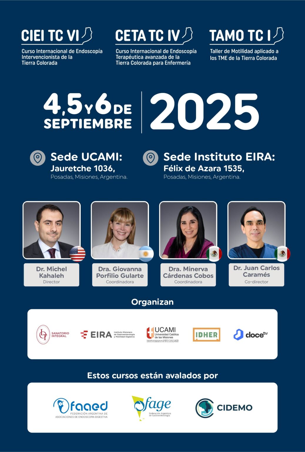 VI Curso Internacional de Endoscopía Intervencionista de la Tierra Colorada – IV Curso Internacional de Endoscopía Terapéutica avanzada de la Tierra Colorada para Enfermería – I Taller de Motilidad aplicado a los TME de la Tierra Colorada
