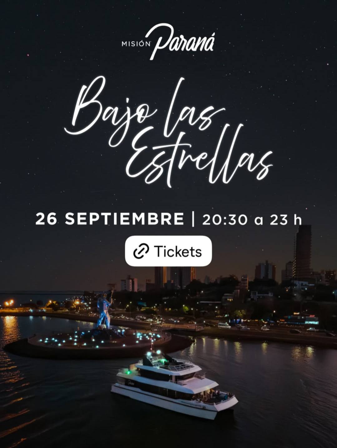 En el Catamarán Misión Paraná. Embarque a las 20:00 horas. Compra de ticket anticipada en www.misionparana.com