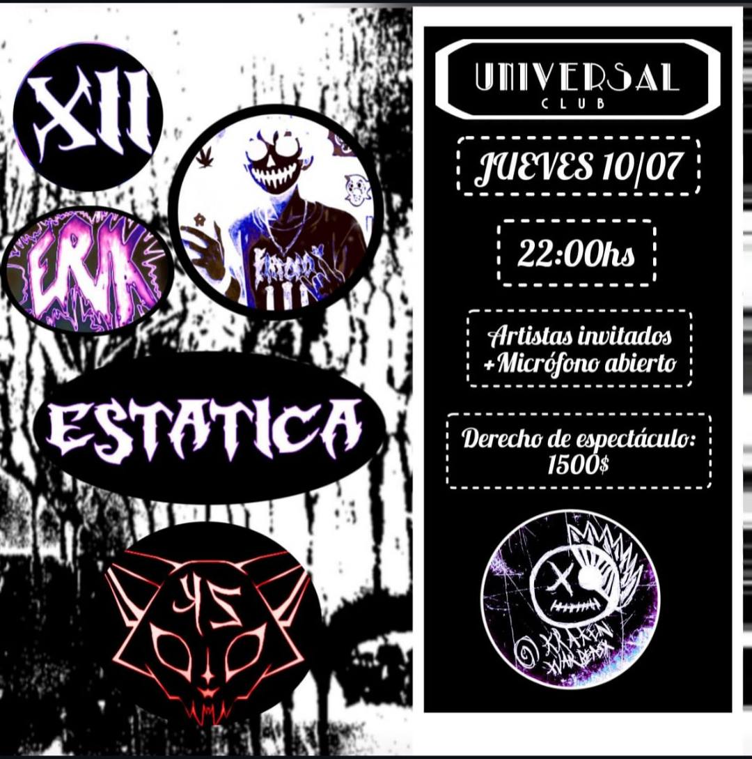 Estática + Artistas invitados + Micrófono abierto en Universal Club. A partir de las 22:00 horas.
